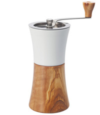 ボディにオリーブウッドとセラミックを採用し、インテリアとしても存在感のある美しい曲線のミル。セラミックの臼を採用しているので、熱によるコーヒー粉へのダメージを防ぎます。(30g)
