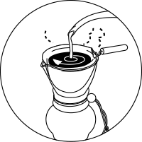 粉の中央に500円玉くらいの円を描くようにお湯を落とし、杯数に関係なく3分以内に注ぎきる