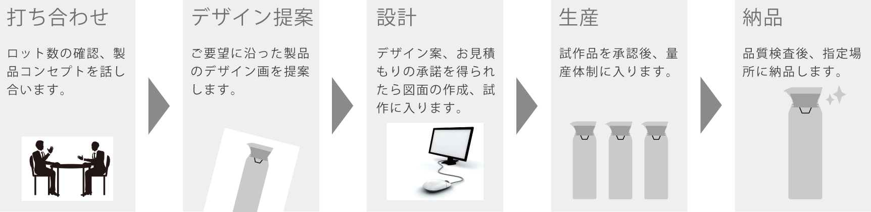 ガラス、セラミック、樹脂、金属、木材などを組み合わせたオリジナル家庭用品の開発を承ります。素材によってミニマムロットは変わりますので、お気軽にお問い合わせください。