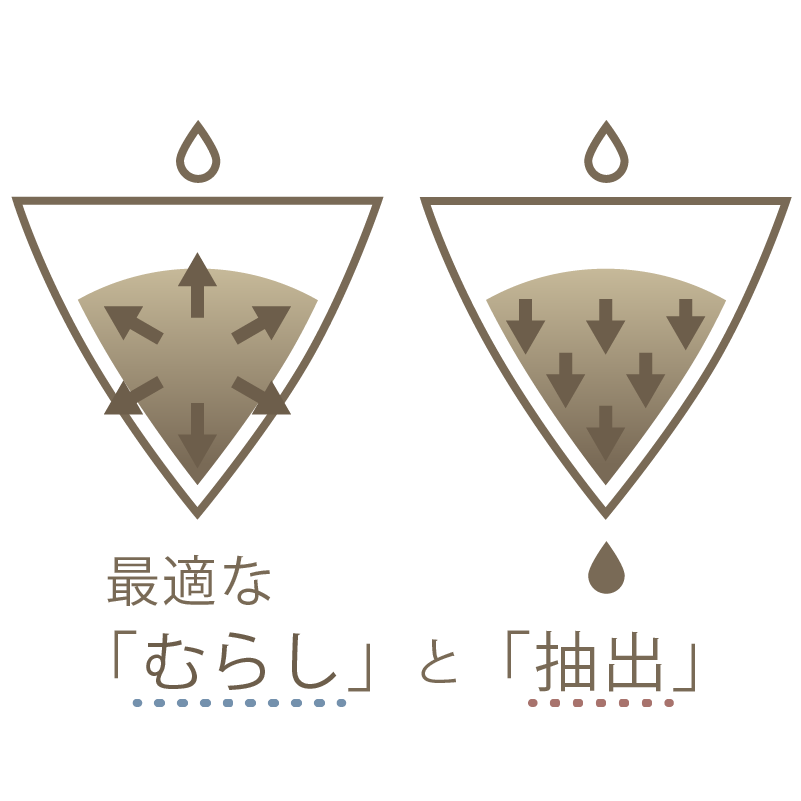 2層構造のコーヒー専用フィルターにより、コーヒー抽出で重要な「むらし」がしっかりとでき、抽出スピードも安定します。