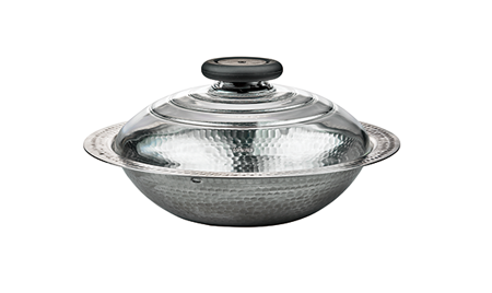 鍋身はステンレス製でお手入れも簡単。槌目が美しいスタイリッシュなデザインです。