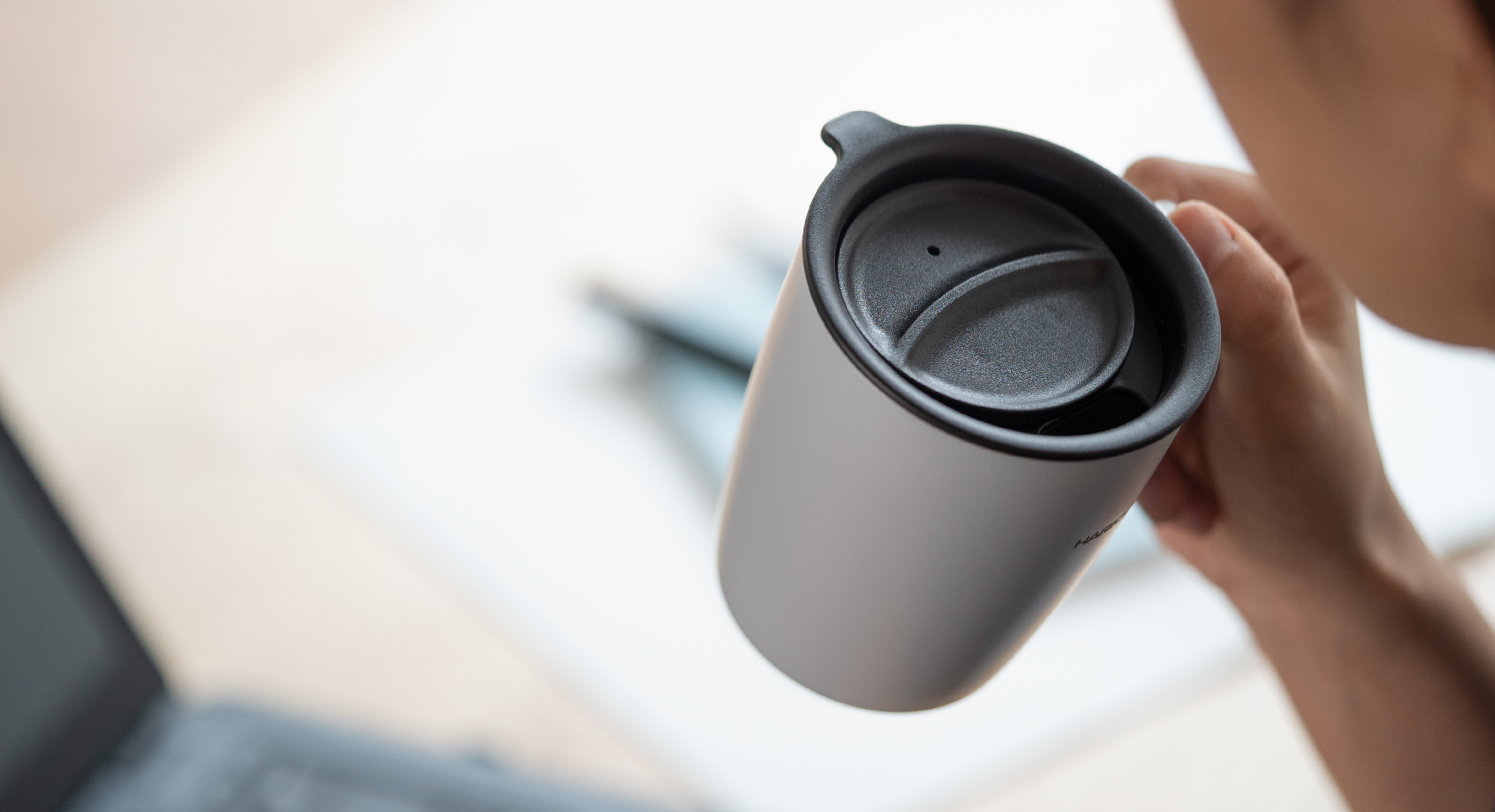 冷めにくいスライド式のフタ付きで、こぼしにくく、スムーズに移動できます。