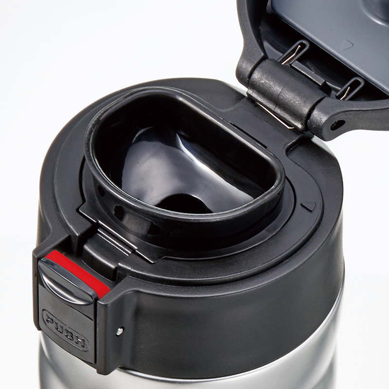 ロックスイッチ付きのフタを採用。移動中も片手でさっと飲めます。