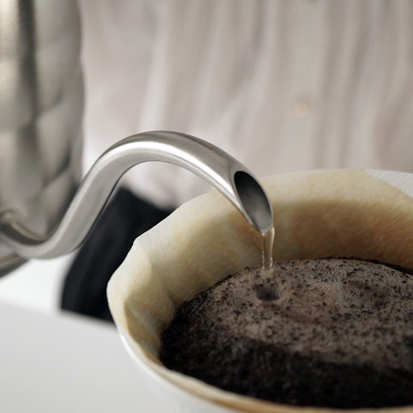 細くて長い注ぎ口は、コーヒー粉の中心により近くでドリップが可能に。