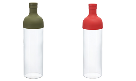 ワインのように食事の時に水出し茶を愉しんでいただきたいという思いからできた、ワインボトル型のフィルターインボトル。 注ぎ口部分にフィルターがセットされているので、そのまま注げます。