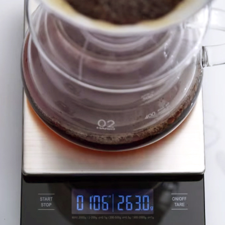 おいしいコーヒーを淹れるためには、抽出量と抽出時間の計測が不可欠です。 V60メタルドリップスケールは両方を同時に計測することができるハンドドリップのためのスケールです。