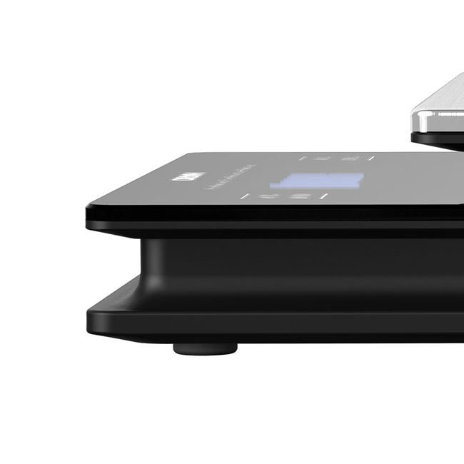 ステンレス製計量板は断熱材入り。連続した抽出でも熱による計量誤差を抑えます。