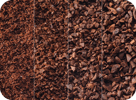 挽いた豆の粒の目安はグラニュー糖程度の細挽きからザラメ程度の粗挽きまであります。使用する抽出器具や用途によって変わります。