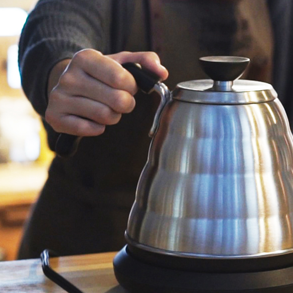 細くて長い注ぎ口は、コーヒー粉の中心により近くでドリップが可能に。