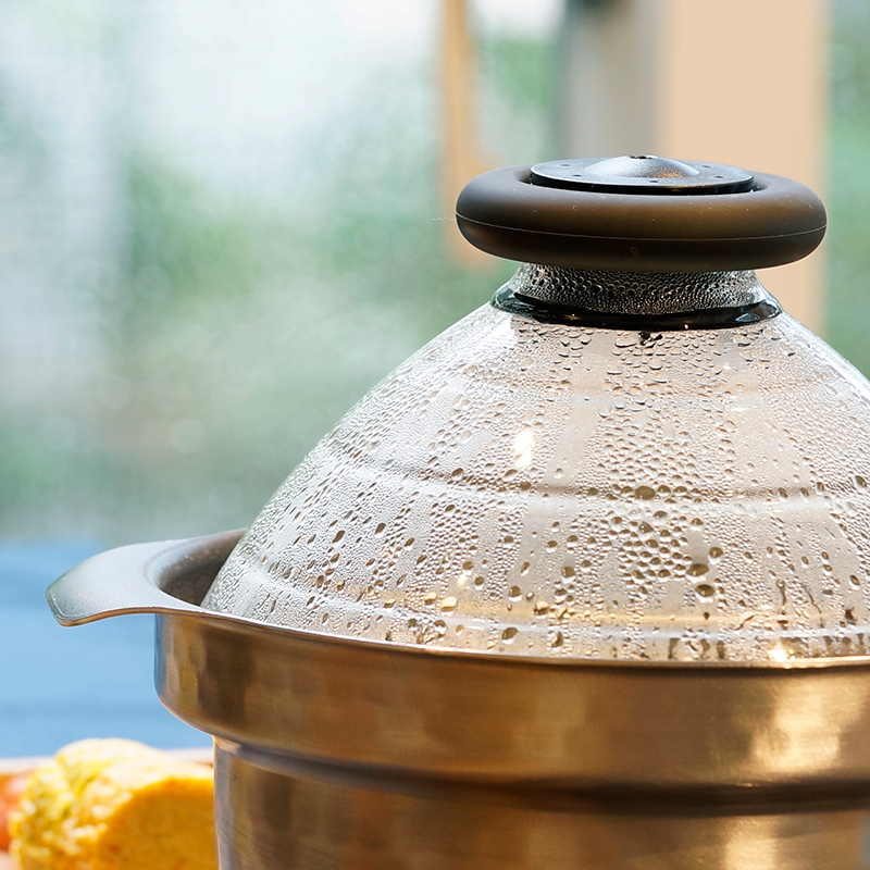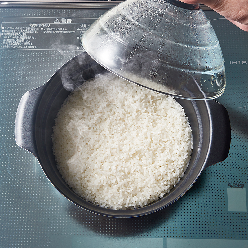 The heat-resistant glass lid allows you to see your rice as it cooks.