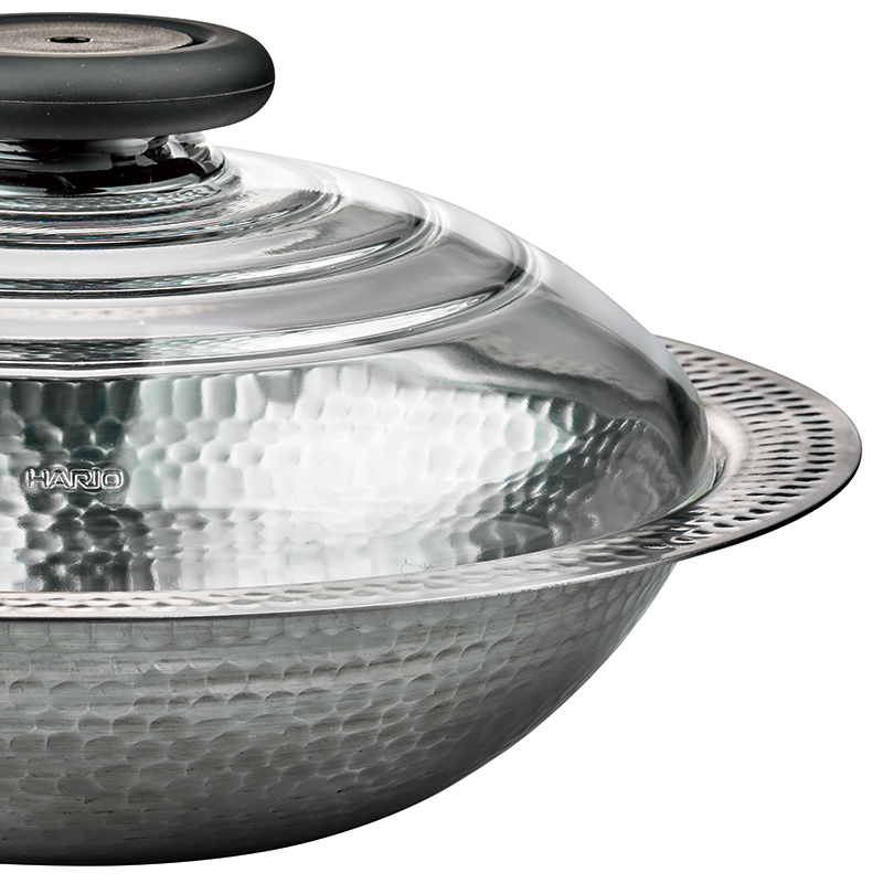 鍋身はステンレス製でお手入れも簡単。槌目が美しいスタイリッシュなデザインです。