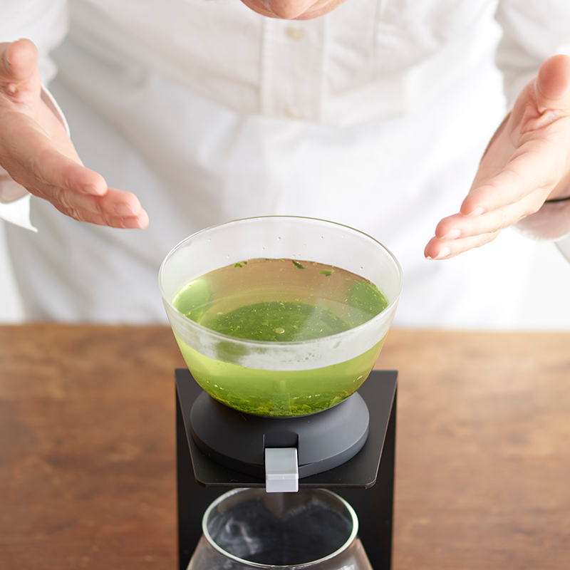 ドリッパーの上部を広げ、お茶の香りをより愉しめる形状に。