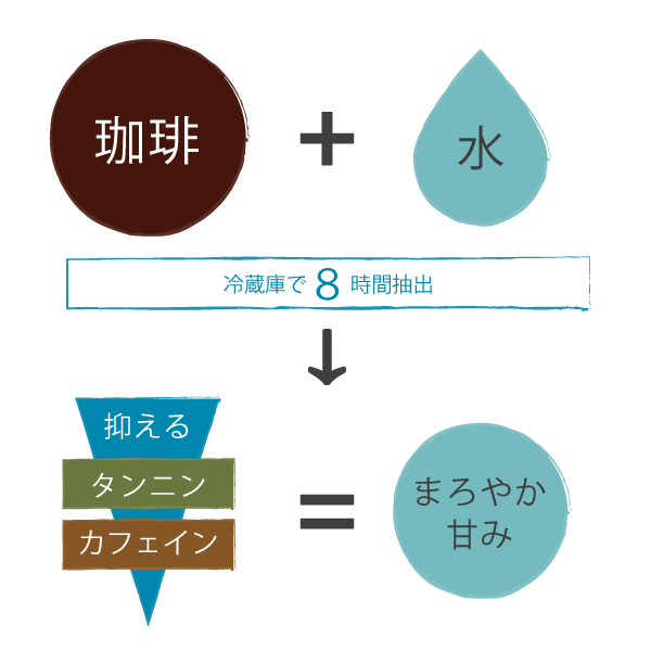 When brewed with cold water, tannin and caffeine do not easily effuse. You can enjoy mild coffee free of bitter or astringent taste.