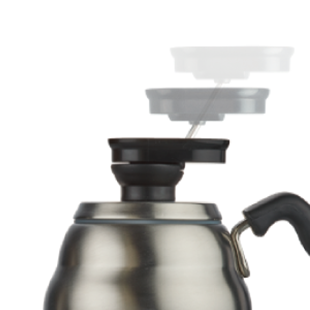 ケトルのノズル根元付近の温度を計測するので、ドリップ中でも温度管理が簡単。